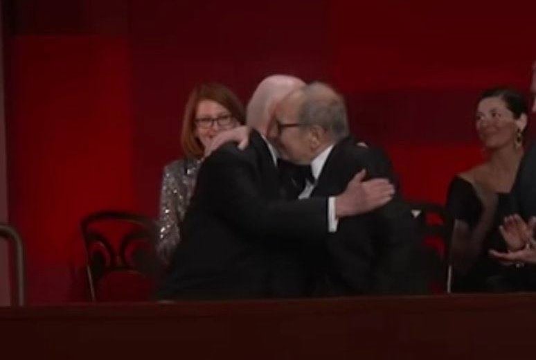 It was another sign of sincere affection and admiration, similar to the beautiful moment when Ennio Morricone was announced as the winner of the Academy Award for Best Original Score in 2016 for Quentin Tarantino’s The Hateful Eight.