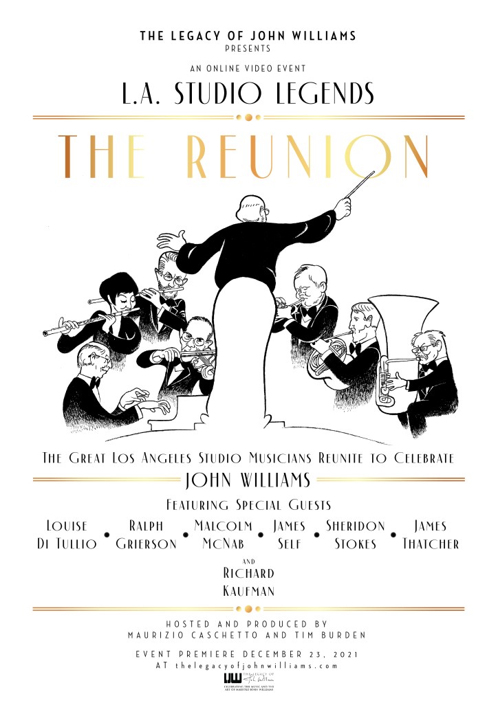 Exclusive online video event coming December 23 at The Legacy of John Williams with the great Los Angeles studio musicians reuniting for the first time in years to celebrate John Williams
