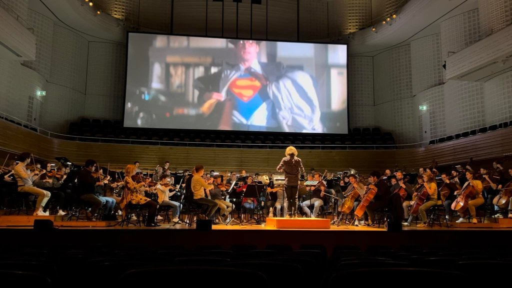 The organization Film Concerts Live has produced many of the above-mentioned titles (Star Wars and Harry Potter are managed by respectively Disney Concerts and CineConcerts) and made them available to orchestras to perform. The KKL in Lucerne has always been one of the preferred platforms to launch many of their catalog titles (thanks also to the enthusiasm of film music concert promoter Pirmin Zängerle, the manager of City Light Concerts who collaborates with IMG Artists and Film Concerts Live to help bringing these projects to the concert stage) and the world premiere of «SUPERMAN» – IN CONCERT was no exception. The performance was originally scheduled to debut in May 2020, but the Coronavirus pandemic forced to postpone the event several times since then. Finally, the date of April 29, 2022, was set and Superman could finally have its long-awaited world premiere.
