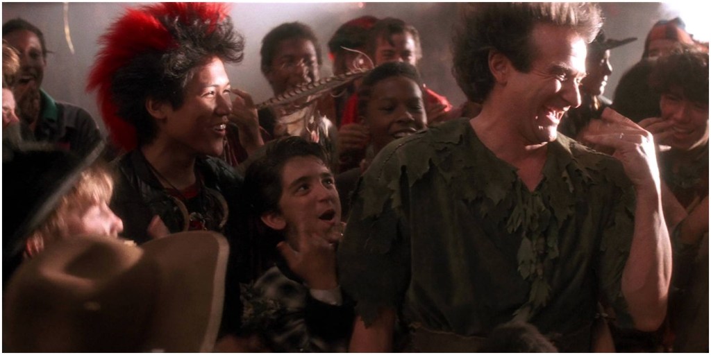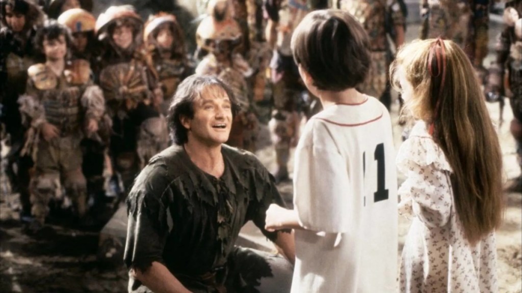 Based on characters and situations created by English writer James M. Barrie, Hook retells the myth of Peter Pan and his arch-nemesis Captain Hook as a sequel of sorts to the classic novel, imagining what might happen if Hook had survived his original fate in the mouth of the giant crocodile, and what if Peter Pan decided to leave Neverland and grow up as an adult. Working from a script by James V. Hart, director Steven Spielberg uses his own great deal of imagination and visual flair to bring to life the fantastical tale of Captain Hook kidnapping the children of Peter Pan and wanting a rematch with his opponent, now a middle-aged workaholic lawyer named Peter Banning who’s forgot Neverland and who now must regain his own imagination in order to save his kids.