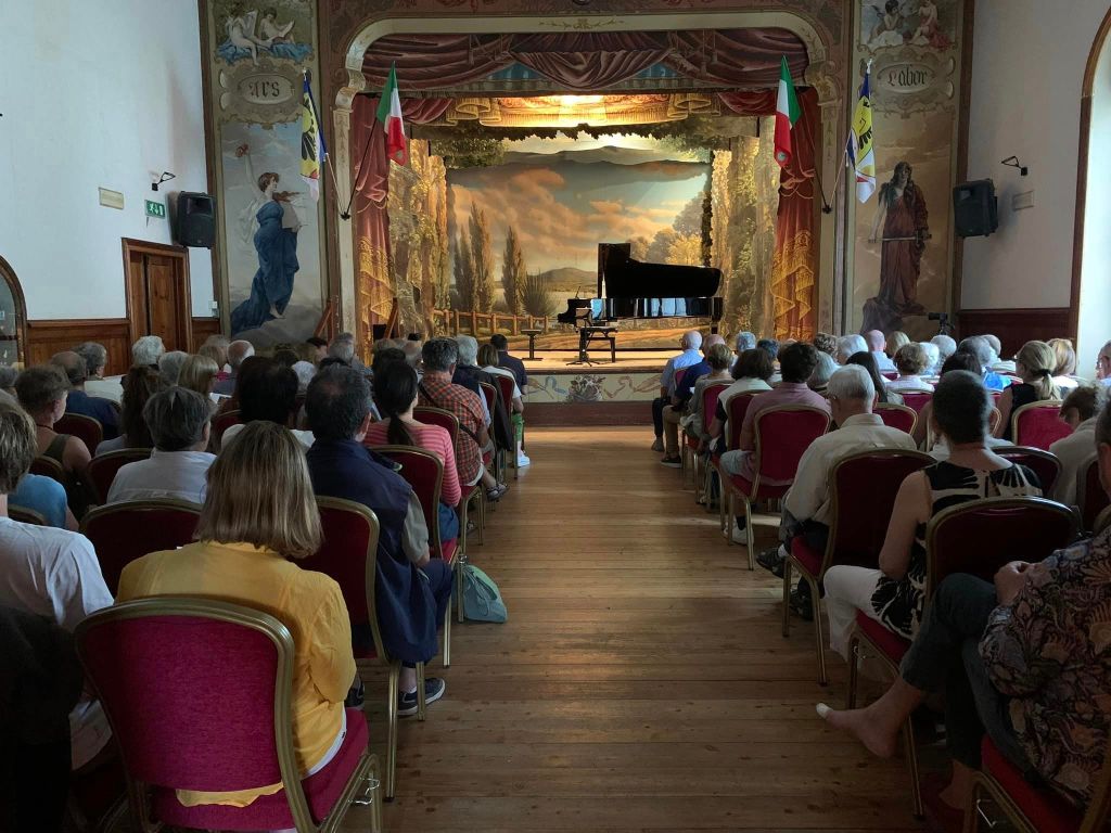 The opening recital had Simone Pedroni on the spotlight as the solo performer. The pianist and artistic director of the festival graciously introduced the season from the stage of the beautiful Teatro Unione Alagnese, remarking the importance of bringing forward a younger generation of talented performers. Cellist Christiana Coppola was at hand and spoke briefly to the audience. After some further information, about the music we were about to experience, Pedroni sat at the piano for two major compositions from Frédéric Chopin’s later life, the Barcarole Op. 60 and the Polonaise-Fantaisie op.61. The Barcarolle, with his wistful, romantic and sensual character, and the Polonaise-Fantaisie imbued with the rhythm and metre of the polonaise, a traditional polish dance, present great demands on the performer, but in Simone Pedroni’s sensitive performance (playing from memory), it all seemed effortless. After the two Chopin pieces, came the monumental Pictures at an Exhibition by Modest Mussorgsky. Again, playing sans score, it all seemed effortless, even though one understands the great technical and emotional demands of the work. Yet the music just seemed to flow from Pedroni’s heart and mind to his fingers and through the eighty-eight keys of the piano to us all in the audience. Right from the start of the first promenade, every section was performed with the fitting character of the picture it intended to depict. “Gnomus” was mysterious and ominous, “Il vecchio castello” had a dirgelike quality to it, “Tuileries” was appropriately youthful, in stark contrast to the depiction of the two jews in “”Samuel” Goldenberg und “Schmuÿle,” filled with austerity. Everything fit the exact character, and even if you have no knowledge whatsoever of the paintings, drawings and sketches by Viktor Hartmann that reportedly inspired the composer, their atmosphere was palpable all the time, right to the end, with the majestic “Bogatyrskiye vorota” (often translated as “The Great Gate of Kiev”). At the hands of Simone Pedroni, the whole piece becomes a journey through the mind and life of the composer. At the end of this masterpiece of the piano one could feel the electricity in the room, pouring out of the brilliant and expressive performance by Simone Pedroni. Having been a favourite of mine for some 30 years now, it is a piece I know fairly well (as a listener only), and yet I don’t think I ever had such an overwhelming experience with it before. As demanding, both physically and emotionally, as performing this three works were, gracious as always, our soloist kindly sent us off with a beautiful performance of Grieg’s Bryllupsdag på Troldhaugen (“Wedding Anniversary at Troldhaugen”), filled with appropriate lyricism. Such a wonderful way to set everyone’s mood as we return to the gentle streets of Alagna. This writer highly recommends anyone interested in these pieces to start right with Pedroni’s own readings. He has recorded the Mussorgsky twice, and the Grieg encore can be found on his YouTube channel (and while there, be sure to check out a great collection of videos, including some captured during previous seasons of the Alagna Music Festival).
