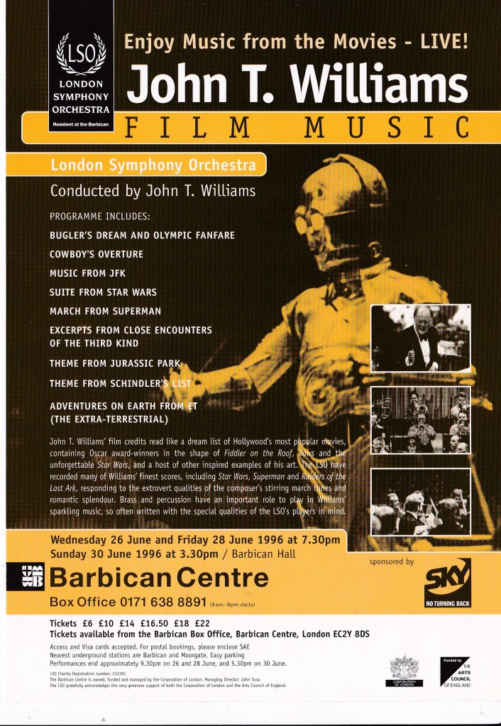 Neil first performed for John Williams in 1996, when the composer returned to London after several years of absence to both perform live concerts and record new albums in studio. Williams conducted two concerts of his film music, one at the Royal Academy of Music with the resident’s orchestra on June 21st, and the second with the London Symphony Orchestra at the Barbican Centre on June 26th. During the same week, Williams went to Abbey Road to record two albums with the LSO for Sony Classical, The Hollywood Sound (a collection of themes and suites from Academy Award-winning film scores) and a disc featuring his own Bassoon Concerto The Five Sacred Trees plus works by Toru Takemitsu, Alan Hovhaness and Tobias Picker. It was an exciting and long anticipated reunion between the composer/conductor and one of his favorite orchestras in the world, which at the time still had a handful of players who performed in the first Star Wars score in 1977, including Maurice Murphy (Principal Trumpet), Eric Crees (2nd Principal Trombone), and Kurthans Goedicke (Timpani).