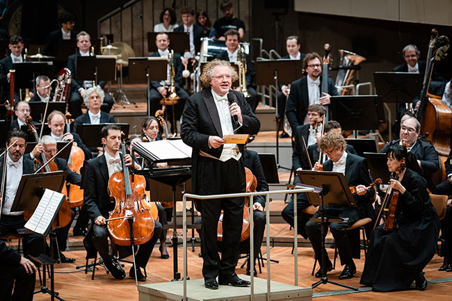These two selections were certainly highlights of the evening, but going back to the grand finale of the first half, the audience was presented with an absolutely rousing performance of the suite from E.T. The Extra-Terrestrial (1982). The score has been represented in concert often by the “Flying theme” or by “Adventures on Earth,” the concert distillation of the finale. Not until 2009 did Williams prepare the E.T. and Eliott harp music for concert, naming it “Stargazers,” and only in 2011 was the present suite with the three-movement structure introduced. “Stargazers” has been widely performed on its own, and the revised “Three Million Light Years from Home” (i.e. the music accompanying the opening of the film) has had a few performances too. But the actual suite has only returned in 2023, for the Japan concerts (though in abridged fashion), replacing the final movement, “Adventures on Earth,” by “Flying,” making it, in this writer’s opinion, a less pleasing presentation. Back then, it fell on Denève to bring the suite to life with the Saito Kinen Orchestra, but this time, with the mighty Berlin Philharmonic, the original 2011 concept for the suite was fully realized. The orchestra played with gusto and the opening was made even more suspenseful and magical with the presence of the organ (as we were sitting near it, one could feel the surroundings vibrate to its sound … simply amazing). From the mysterious and menacing opening, the orchestra moved to the delicate “Stargazers” with a superb performance on the harp by Marie-Pierre Langlamet, accompanied with emotion and understanding especially by the woodwinds and horns, and ended with the beautiful duet of harp and flute over a soft orchestral backup. This is music that makes time stand still, just like a Satie miniature, and Denève was able to convey that to the extent that no sound could be heard from the audience and, as the piece ended, a reverential silence followed. Denève’s conducting style enabled the audience to fully understand when to clap, allowing them to enjoy everything to the last note as it softly faded away inside the Großer Saal of the Berliner Philharmonie. The finale “Adventures on Earth” started in a glorious fashion, and just as gloriously it went through a faultless and emotional performance that was bound to leave tears in many an eye. When it concluded with a thunderous coda that brought the house down, the astounding brass section of the orchestra delivered the most vigorous reading of the final fanfare, again with strong punctuation by the timpani, delicately balanced by the piccolo. With this the first half of the concert ended, earning the performers the first of several (and very well deserved) standing ovations.