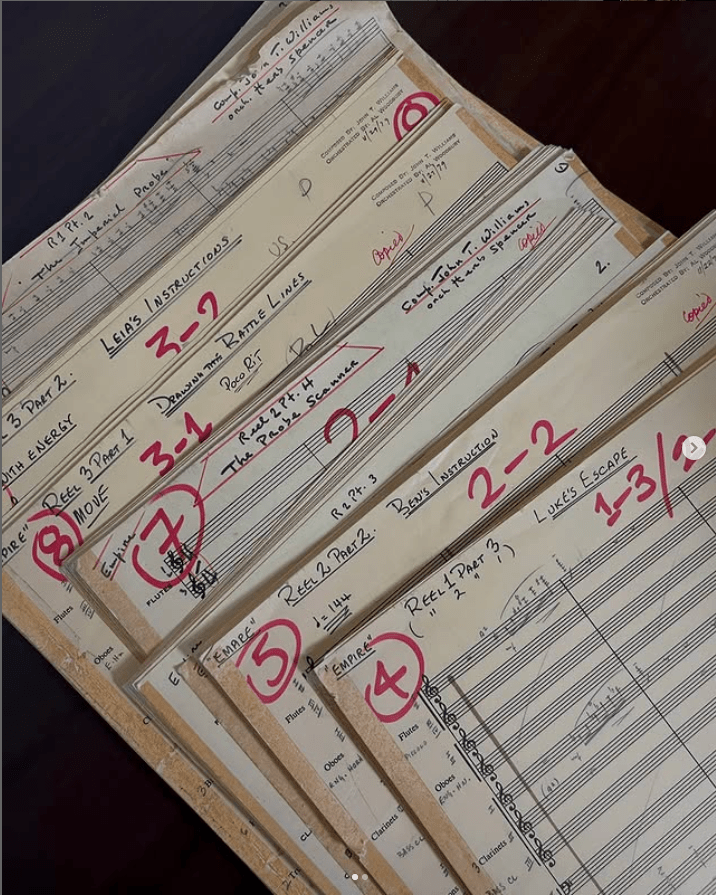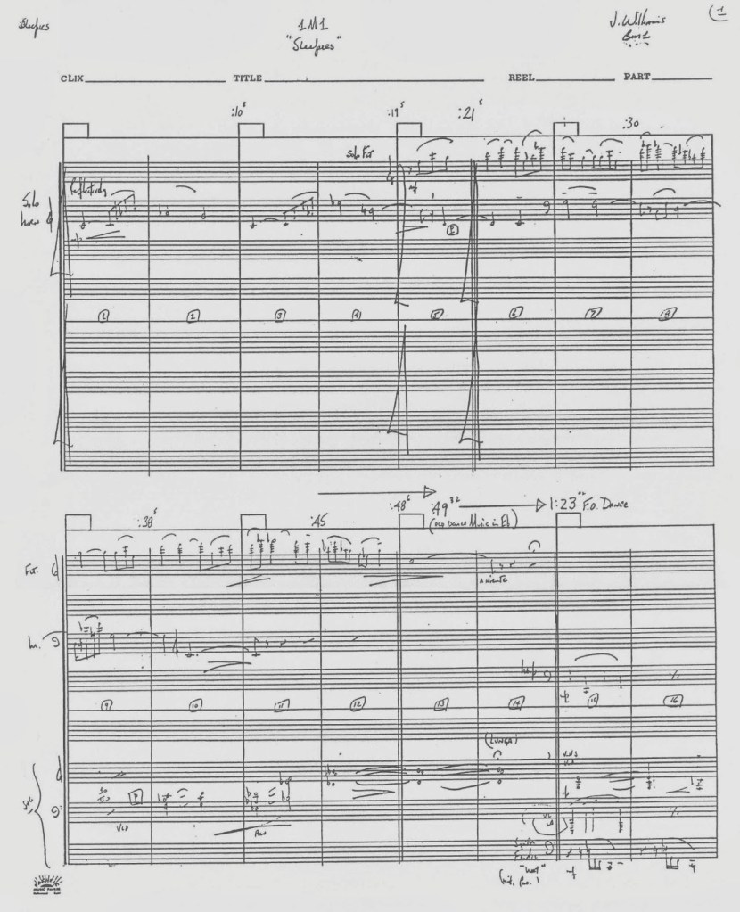 The level of accuracy and detail of Williams’ sketches means he doesn’t need a large team to create the final product: On the contrary, his process requires just a few people who can ensure a fluid and efficient workflow that guarantees he always gets what he wants. For many years, Williams used to turn his sketches to a trusted colleague orchestrator whose task was to proofread them and prepare the full score manuscript: Herbert Spencer was his main orchestrator from the late 1960s to 1990; Alexander Courage and Al Woodbury would also help out on some of the bigger projects, while John Neufeld and Conrad Pope assisted Williams for most of the 1990s up until the late 2000s, when the composer opted to turn his detailed sketches directly to Mark Graham and his music prep team.