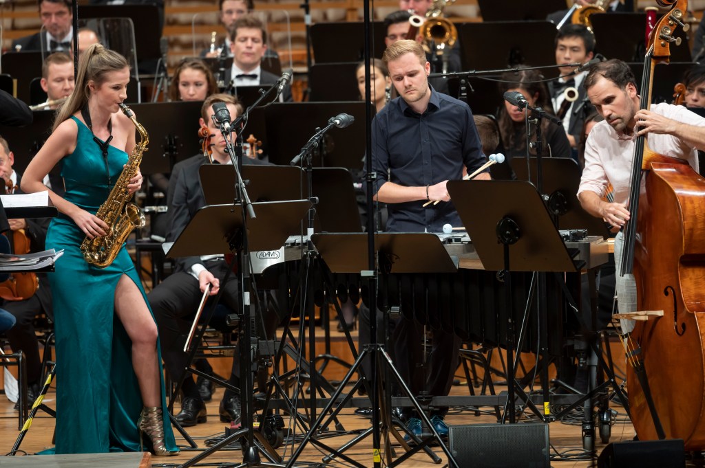 Valentine Michaud tackled the incredibly difficult saxophone solos of the 3-movement suite from Catch Me If You Can, also known as “Escapades for Alto Saxophone and Orchestra”, a true concertino for alto sax featuring dazzling solo parts also for vibraphone and bass (performed here respectively by Fabian Ziegler and Diego Caruso). Renowned trumpet player Reinhold Friedrich (famous for having been picked by late Italian maestro Claudio Abbado as the principal trumpet of the Lucerne Festival Orchestra, with whom he performed the whole Gustav Mahler symphony cycle) performed the noble lyrical solos of Born on the Fourth of July and JFK, but also added his twist to the lovely 1920s jazz-infused “Opening Credits” from The Adventures of Tintin. French clarinetist Paul Meyer is featured instead in the infectious and incredibly demanding solo on “Viktor’s Tale” from The Terminal.