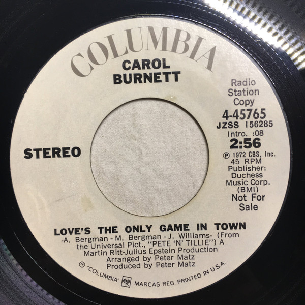 “Love’s The Only Game In Town” (from Pete ‘n’ Tillie) Single – 45rpm vinyl (1972)