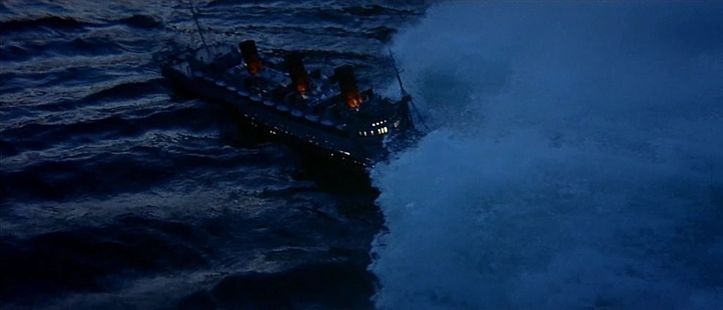 From its portentous opening chord, Williams’ Main Title gives The Poseidon Adventure the feeling of an epic, even though the composer’s spotting and overall approach to the work is spare and atmospheric. Rustling, glissando-like flourishes create a steady, rhythmic tread—the musical equivalent of waves beating against the hull of the ocean liner—while an ascending yet lonely-sounding hom fanfare erupts out of Williams’ heavy, ominous orchestral chords. The composer develops the fanfare into a melody for horns and woodwinds that chugs along with footage of the Poseidon plowing through the waves: a theme for the vessel itself, for the harrowing adventure to come, and for the indomitable will of the passengers who will survive—a will as strong as the steel hull of the ocean liner.4